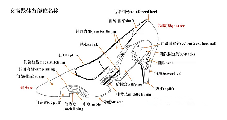 (一)鞋幫:鞋幫是鞋除鞋底之外的部分。是由鞋面和補(bǔ)強(qiáng)鞋面而用里兩面部分組; 成鞋的身價主要體現(xiàn)在鞋幫,是整個皮鞋使用壽命長短的決定因素之一。