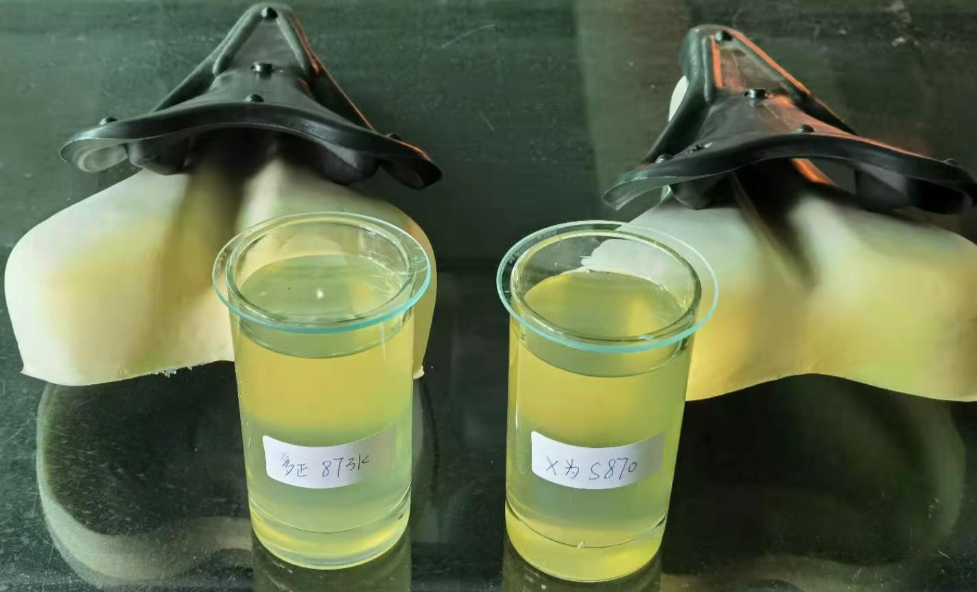 多正環(huán)保噴膠鞍座膠水NH-873K是以氯丁膠為主要原料,通過(guò)接枝工藝,配合進(jìn)口增粘樹(shù)脂合成的一種耐熱型油性噴膠,特別適合應(yīng)用于公路自行車、山地自行車、小輪車、技巧車等的鞍座貼合包覆。為了讓大家更了解鞍座噴膠,我司選取市面上同類型的鞍座噴膠某為S870與多正NH-873K作對(duì)比測(cè)試。